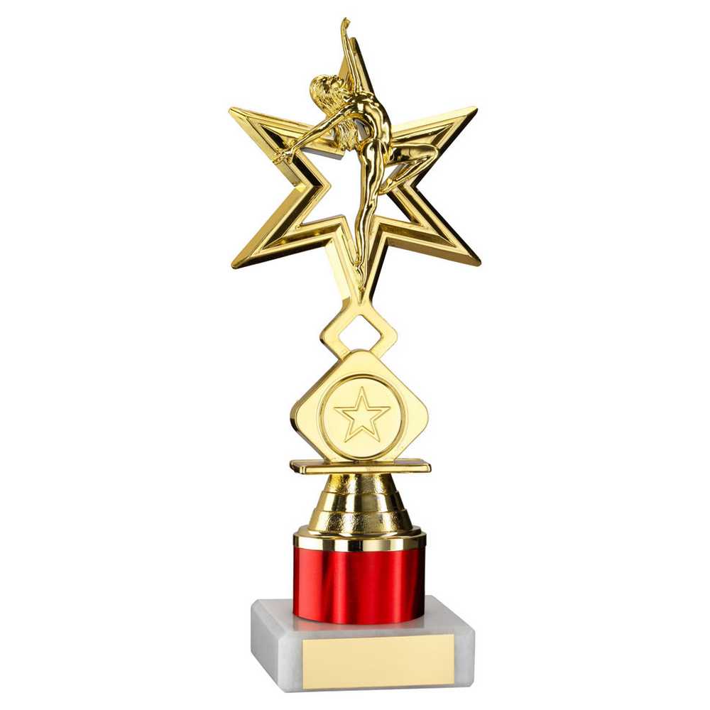 GOLD/RED 'DANCE/GYM' STAR FIGURE ASSEMBLED ON MARBLE (1" CEN/1" TUBE) - 8in