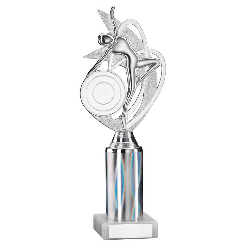 SILVER 'DANCE/GYM' FIGURE ASSEMBLED ON MARBLE (2" CEN/3" TUBE) - 10in