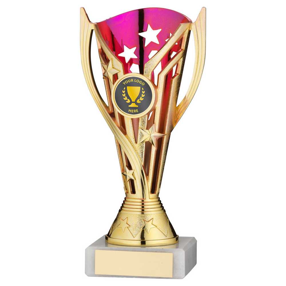 GOLD/PURPLE PLASTIC 'FLASH' CUP ASSEMBLED ON MARBLE (1in CEN) - 7in