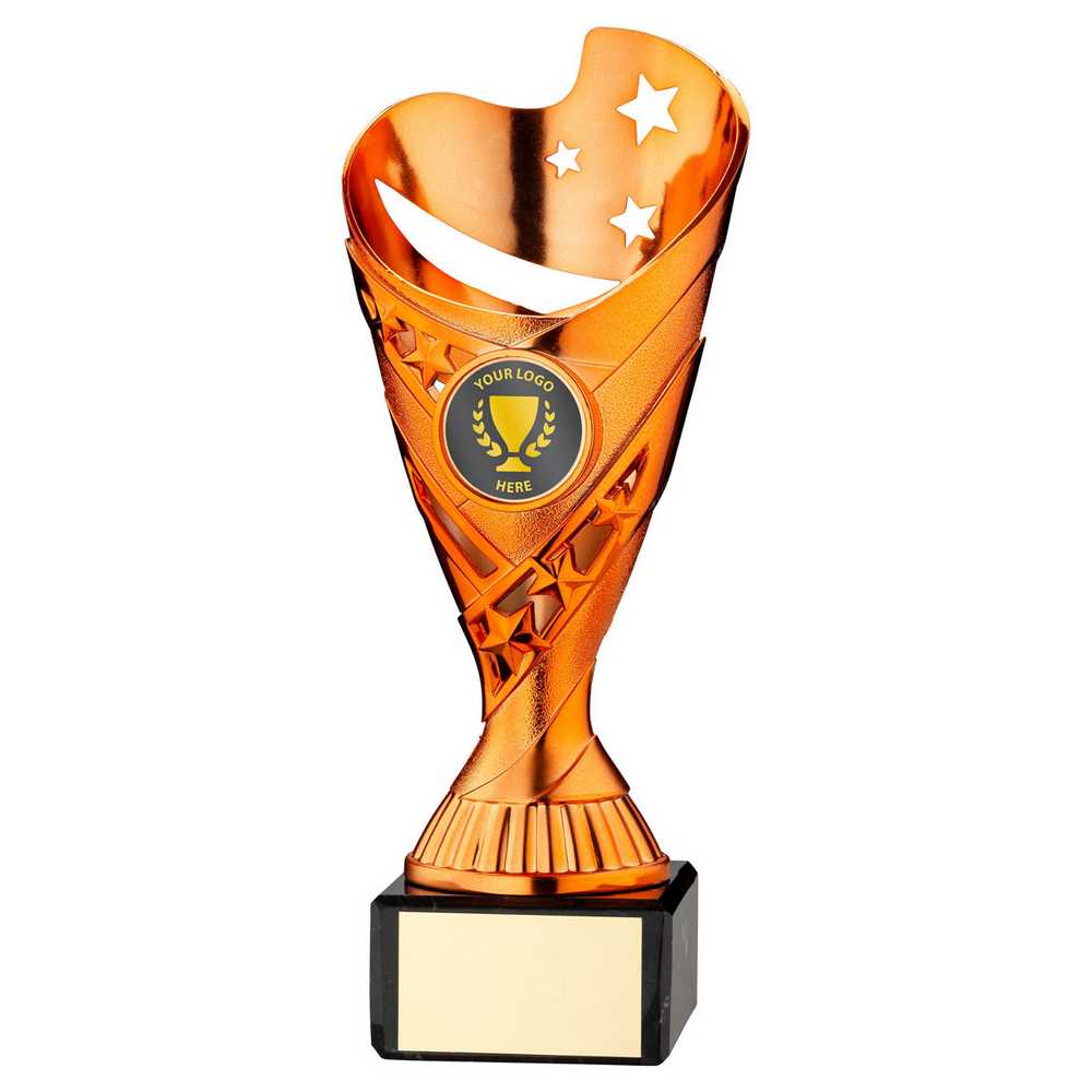 COPPER PLASTIC 'SABRE' CUP ON BLACK MARBLE ASSEMBLED TROPHY (1" CEN) - 7.25in
