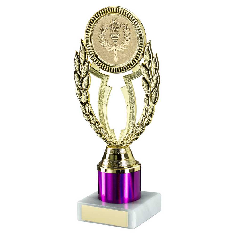 GOLD/PURPLE 'WREATH' HOLDER ASSEMBLED ON MARBLE (2" CEN/1" TUBE) - 7.75in