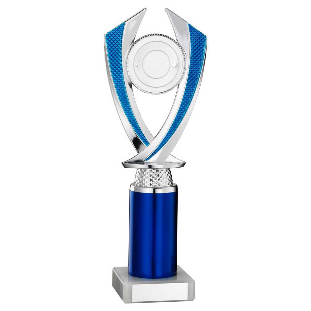 SILVER/BLUE 'DIAMOND' HOLDER ASSEMBLED ON MARBLE (2" CEN/3" TUBE) - 9.75in